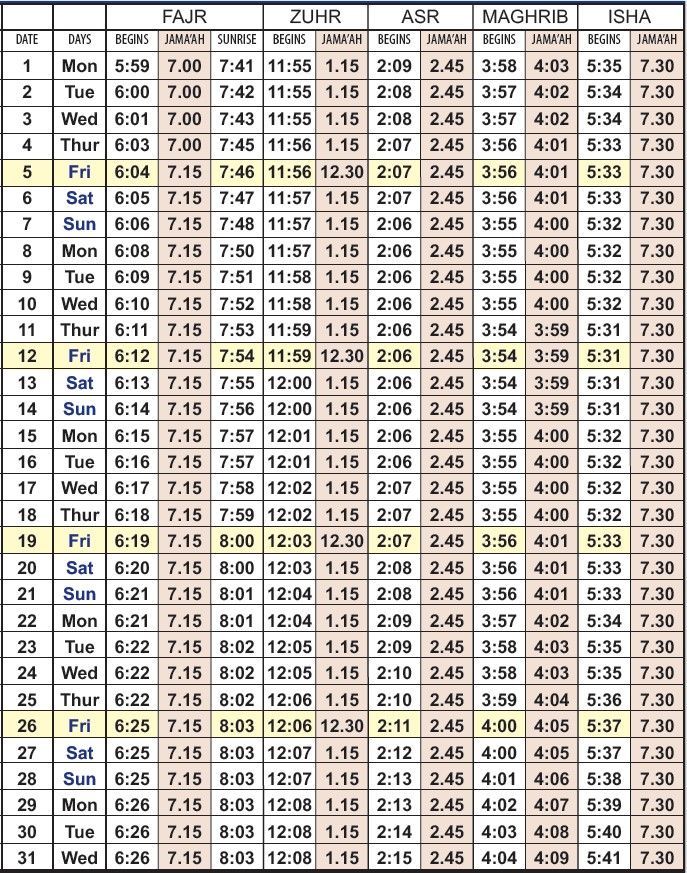 Please note that the Mosque will open each day 15 minutes before each of the five Jama'ah prayer times and will close 15 minutes after each prayer time.